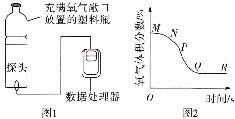 8. 某化学兴趣小组借助氧气传感器探究分子运动的特点。收集一瓶氧气,按照以下步骤进行实验:①敞口放置;②双手贴在塑料瓶外壁上;③双手紧贴并倒转瓶口。实验中测得氧气的体积分数分别对应图2中的MN、NP、PQ段。下列说法错误的是(