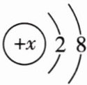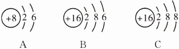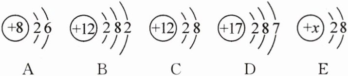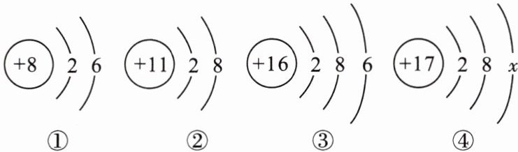 (3)若 $ x = 8 $,请写出符合该组成结构且显不同电性粒子的化学符号:________________________。