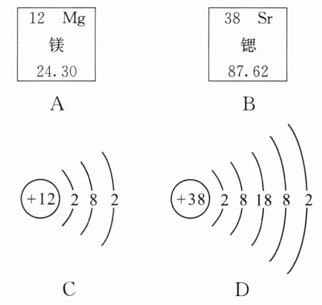 8. 联合国将2019年列为“国际化学元素周期表年”。锶、镁元素在元素周期表中的部分信息及原子结构示意图如下。请回答下列问题: