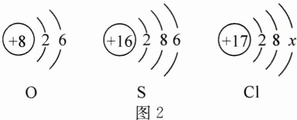 (3) 如图2是氧、硫、氯三种元素的原子结构示意图。