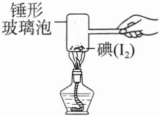 2. 如图,用酒精灯加热密封锤形玻璃泡内的碘颗粒,一会儿观察到玻璃泡内充满紫红色气体。