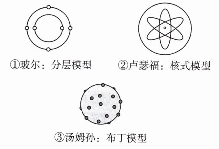 (填字母)。(4) 如图是几位代表性的科学家提出的原子结构模型,请根据所学知识确定模型建立的先后顺序: