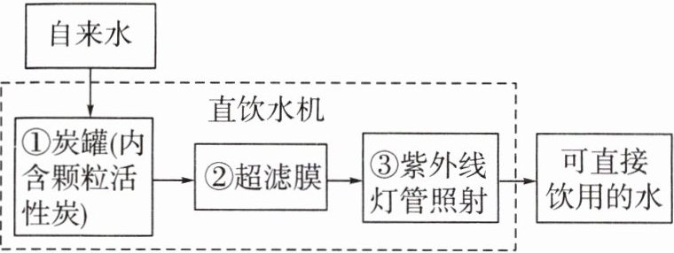 对天然水进行净化处理,可以得到自来水,将自来水进一步净化处理得到可直接饮用的水。机场、车站等公共场所设有许多直饮水机,其处理水的过程如图所示。