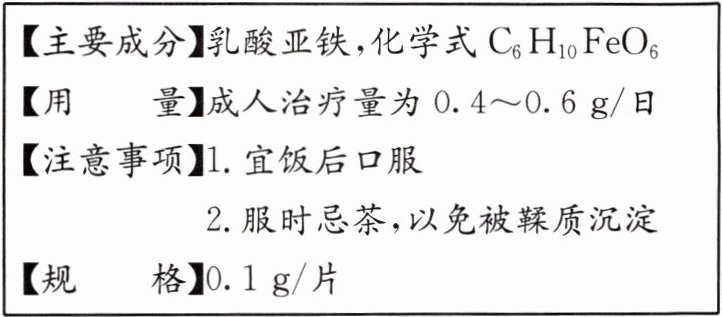 15. 乳酸亚铁片可用于治疗缺铁性贫血,如图为乳酸亚铁片说明书上的部分文字。请仔细阅读后回答: