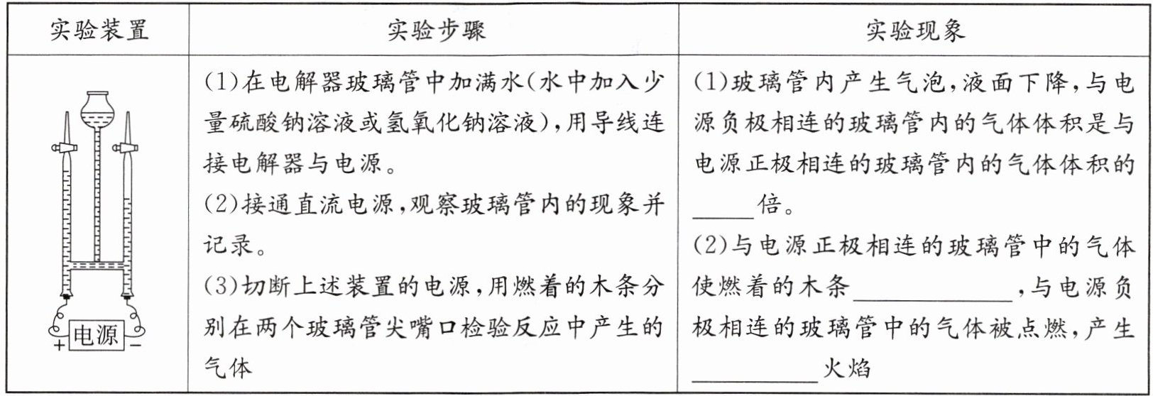 (2)接通直流电源,观察玻璃管内的现象并记录。