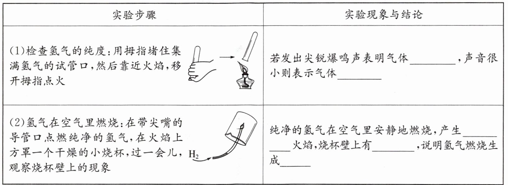(2)燃烧更旺 淡蓝色 【实验结论】氢元素和氧元素 【问题与交流】1.水通电时,水分子分解为氢原子与氧原子,2个氢原子结合成1个氢分子,很多氢分子聚集成氢气;2个氧原子结合成1个氧分子,很多氧分子聚集成氧气 2.①氢气在空气中燃烧生成水;②水通电生成氢气和氧气