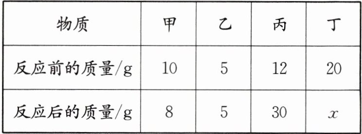 )① 反应中,甲和丙的质量变化比为$1:8$