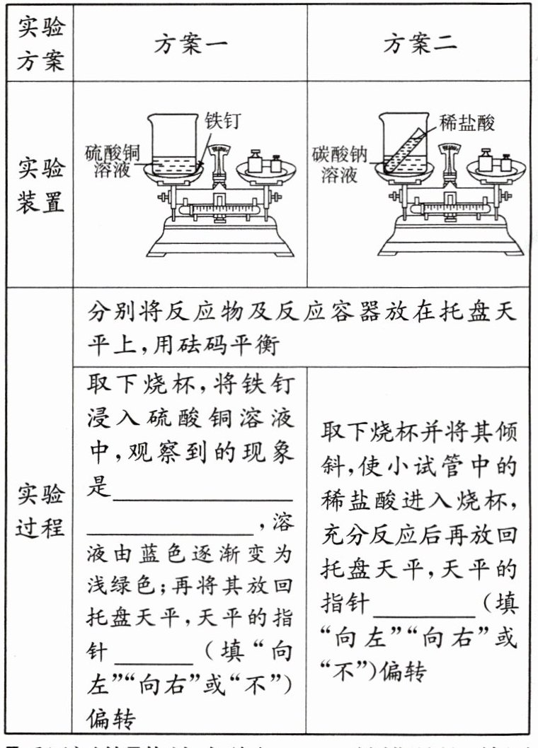 2. 根据以下实验方案“探究参加化学反应前后各物质的质量总和是否相等”,请你思考,将实验结果写在横线上。
