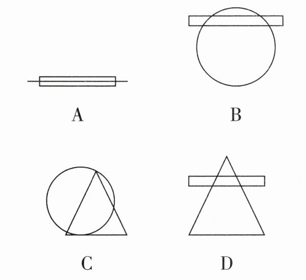 10. 下列四个图中,每个图均是由四种简单图形 $ a,b,c,d $(三角形、长方形、圆、直线)中的某两个图形组成的,例如:由 $ a,b $ 组成的图形为 $ a \odot b $,那么在四个选项中,表示 $ a \odot d $ 的是( )
