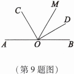 9. 如图,O是直线AB上一点,过点O作任意射线OM,OC平分∠AOM,OD平分∠BOM,则∠COD的度数是 ( )