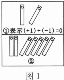 (1) 中国人最先使用负数,魏晋时期的数学家刘徽在“正负术”的注文中指出,可将算筹(小棍形状的记数工具)正放表示正数,斜放表示负数。如图 $1$,根据刘徽的这种表示法,观察图 $1$①,可推算图 $1$②中所得的结果为( )