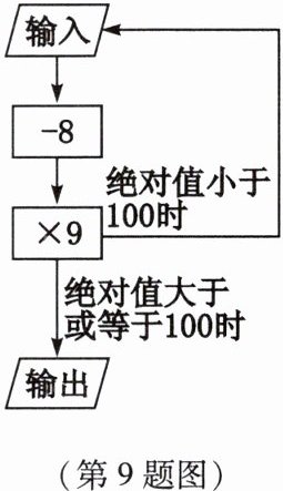 ∴ 需把-36输入,得$(-36-8)×9=-396,|-396|=396>100$,