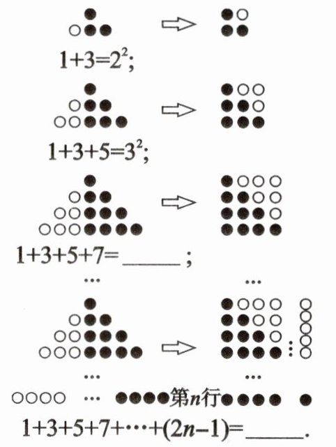 …1 + 3 + 5 + 7 + … + (2n - 1) = _________.(2) 观察下图,根据 (1) 中的结论,计算图中黑球的个数,用含有 n 的代数式填空: