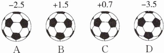 3. 生产厂家检测 $4$ 个足球的质量,检测结果如图所示,超过标准质量的克数记作正数,不足标准质量的克数记作负数,下列 $4$ 个足球中最轻的是(