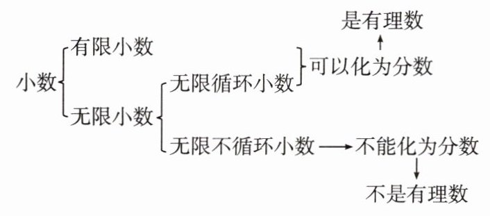 小数$\begin{cases}有限小数\\无限小数\begin{cases}无限循环小数\\无限不循环小数\end{cases} \end{cases}$$\begin{cases}是有理数\\可以化为分数\\不能化为分数\\不是有理数\end{cases} $
