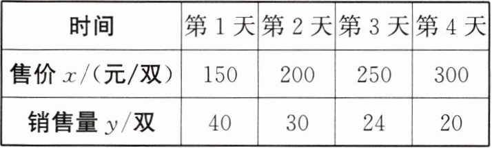 8. 某中学组织学生到商场参加社会实践活动,他们参与了某种品牌运动鞋的销售工作. 已知该品牌运动鞋每双的进价为$120$元,为寻求合适的销售价格进行了$4$天的试销,试销情况如表所示: