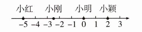 举一反三 已知小红、小刚、小明、小颖四人自南向北依次站在同一条直线上。若把四人的相对位置在数轴上表示,如图所示,则下列描述不正确的是(
