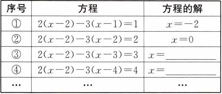 (1)2 4 方程③:2(x-2)-3(x-3)=3,解得x=2;方程④:2(x-2)-3(x-4)=4,解得x=4.