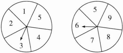 4. 如图,同时自由转动两个转盘,指针落在每一个数上的机会均等,转盘停止后,两个指针同时落在奇数上的概率是(
