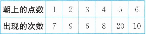 (1)“3点朝上”的频率:$6÷60=\frac{1}{10}$;“5点朝上”的频率:$20÷60=\frac{1}{3}$。