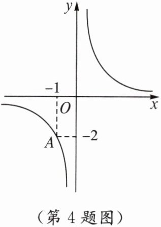 4. 如图,已知反比例函数 $ y = \frac{k}{x} $ 的图象经过点 $ A(-1, -2) $. 则当 $ x > 1 $ 时,函数值y的取值范围是(