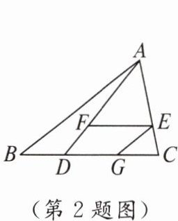 2. 如图,在$\triangle ABC$中,点$D在BC$边上,连接$AD$,点$E在AC$边上,过点$E作EF// BC$,交$AD于点F$,过点$E作EG// AB$,交$BC于点G$,则下列式子一定正确的是(