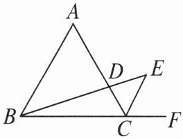 8. 如图,$\triangle ABC$是等边三角形,$CE$是外角的角平分线,点$D在AC$上,连接$BD并延长与CE交于点E$.