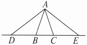 在$\triangle ABD$和$\triangle ECA$中,$\left\{\begin{array}{l}\angle ABD=\angle ACE\\\angle ADB=\angle CAE\end{array}\right.$,所以$\triangle ABD\sim\triangle ECA$。