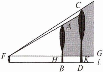 2. 小明在同一地点观察左、右并排的两棵大树$AB和CD$的示意图如图所示,根据图中的条件回答下列问题:视点是点