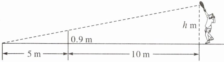 1. 如图,小明在打网球时,要使球恰好能过网,而且落在离网$5$m的位置上,则球拍击球的高度$h$应为(