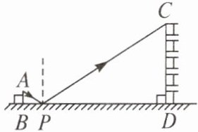 4. 小玲设计用手电来测量某古城墙高度的示意图如图所示.在点$P$处放一水平的平面镜,光线从点$A$出发经平面镜反射后,刚好射到古城墙$CD的顶端C$处.已知$AB\perp BD$,$CD\perp BD$,且测得$AB = 1.4$m,$BP = 2.1$m,$PD = 12$m,则该古城墙$CD$的高度是