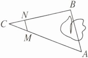 3. 如图,$A$,$B$两处被池塘隔开,在$AB外取一点C$,连接$AC$,$BC$,在$AC上取点M$,使$AM = 3MC$.作$MN// AB交BC于点N$,量得$MN = 3.8$m,则$AB$的长为