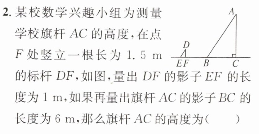 2. 已知某建筑物在地面上的影长为$36$m,同时高为$1.2$m的测杆影长为$2$m,则该建筑物的高为