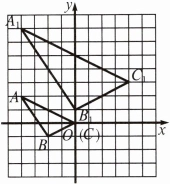 4. 如图,将△ABC的三边分别按相似比2放大得到△$A_1B_1C_1$(顶点均在格点上,且每个小正方形的边长都是1),它们是以点P为位似中心的位似图形,则点P的坐标是(