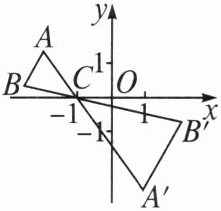 5. 如图,在△ABC中,A,B两个顶点在x轴的上方,点C的坐标是(-1,0)。以点C为位似中心,在x轴的下方作△ABC的位似图形,并把△ABC的边长按相似比2放大,记所得的图形是△$A'B'C$。设点B的对应点$B'$的横坐标是a,则点B的横坐标是(