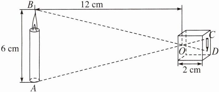 1. 小孔成像原理的示意图如图所示,根据图中所标注的尺寸,这支蜡烛在暗盒中所成的像CD的长是(