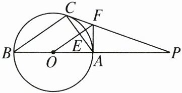 17. 如图,已知$\triangle ABC$ 内接于$\odot O$,$AB$ 是$\odot O$ 的直径,$\odot O$ 的切线 $PC$ 交 $BA$ 的延长线于点 $P$,$OF // BC$,$OF$ 交 $AC$ 于点 $E$,交 $PC$ 于点 $F$,连接 $AF$.