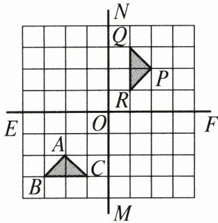 5. 如图,$8×8方格纸上的两条对称轴EF$,$MN相交于中心点O$,对$\triangle ABC$分别作下列变换:①先以点$A为中心顺时针方向旋转90^{\circ}$,再向右平移$4$格,向上平移$4$格;②先以点$O$为中心作中心对称图形,再以点$A的对应点为中心逆时针方向旋转90^{\circ}$;③先以直线$MN$为轴作轴对称图形,再向上平移$4$格,再以点$A的对应点为中心顺时针方向旋转90^{\circ}$.其中,能将$\triangle ABC变换后与\triangle PQR$重合的是(