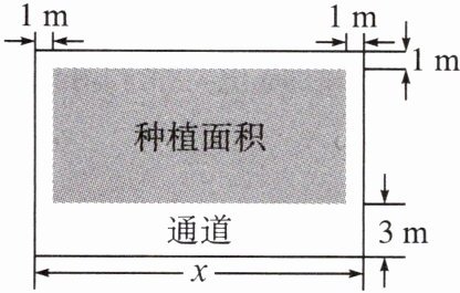 由通道尺寸知:种植区域的长为$x-1-1=x-2$ (m),宽为$(60-x)-1-3=56-x$ (m)。
