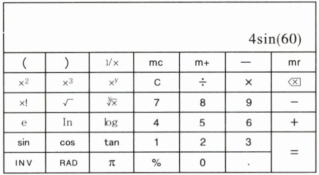 4. 如图,某款国产手机上有科学计算器,依次按键:$4\ \boxed{\sin}\ (\ 60\ )\ \boxed{=}$,显示的结果在哪个相邻整数之间(