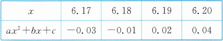 2. 根据下列表格中二次函数 $ y = ax^2 + bx + c $ 的自变量 $ x $ 与函数值 $ y $ 的对应值,判断方程 $ ax^2 + bx + c = 0 $($ a \neq 0 $,$ a $,$ b $,$ c $ 为常数)一个解 $ x $ 的取值范围是(