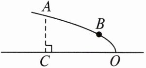 (2)为了既安全又美观,现需在水平线$OC上找一点P$,如果用质地、规格已确定的圆形钢管制作两根支柱$PA$,$PB$对抛物线造型进行支撑加固,那么怎样才能找到两根支柱用料最省(支柱与地面、造型对接方式的用料多少问题暂不考虑)时的点$P$?(无须证明)