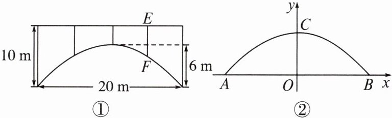 3. 一座拱桥的轮廓是抛物线形(如图①),拱高为$6\ m$,跨度为$20\ m$,相邻两支柱间的距离均为$5\ m$.