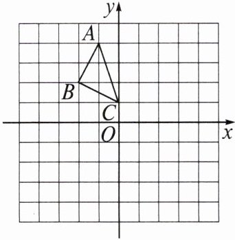 7. △ABC在平面直角坐标系中的位置如图所示,将△ABC沿y轴翻折得到$△A_1B_1C_1,$再将$△A_1B_1C_1$绕点O旋转180°得到$△A_2B_2C_2。$请依次画出$△A_1B_1C_1$和$△A_2B_2C_2。$
