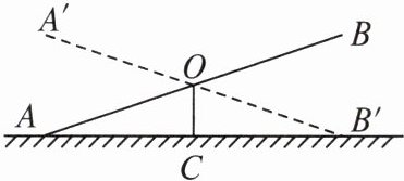9. 如图,跷跷板的支柱 $OC$ 与地面垂直,点 $O$ 是 $AB$ 的中点,$AB$ 可以绕着点 $O$ 上下转动。如果 $\angle OCA = 90^{\circ}$,当 $A$ 端落地时,$\angle OAC = 25^{\circ}$,问小孩玩跷跷板时:(1)在空中划过怎样的线?(2)横板上下可转动的最大角度(即 $\angle A'OA$)是多少?