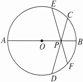 5. 如图,在 $ \odot O $ 中,$ AB $ 是 $ \odot O $ 的直径,点 $ P $ 是 $ OB $ 上的任一点(不与 $ O $,$ B $ 重合),$ CD $,$ EF $ 是过点 $ P $ 的两条弦,则图中的弦有