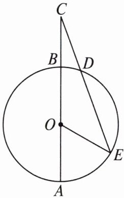 11. 如图,已知 $ AB $ 是 $ \odot O $ 的直径,$ C $ 为 $ AB $ 延长线上的一点,$ CE $ 交 $ \odot O $ 于点 $ D $,且 $ CD = OA $,求证:$ \angle C = \dfrac{1}{3} \angle AOE $。