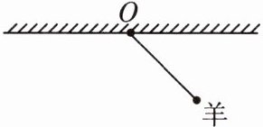 羊的一端拴在点 $O$ 处,绳子长度为 $2 m$。