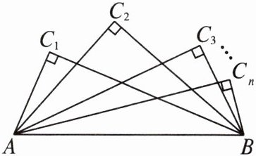 8. 如图,$ \triangle ABC_1 $,$ \triangle ABC_2 $,$ \triangle ABC_3 $,……$$ $ \triangle ABC_n $ 是 $ n $ 个以 $ AB $ 为斜边的直角三角形,试判断点 $ C_1 $,$ C_2 $,$ C_3 $,…$$,$ C_n $ 是否在同一个圆上?并说明理由。