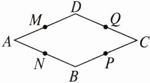 9. 如图,$ M $,$ N $,$ P $,$ Q $ 分别是菱形 $ ABCD $ 各边的中点,点 $ M $,$ N $,$ P $,$ Q $ 在同一个圆上吗?为什么?
